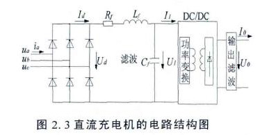 直流充電樁電氣系統三相電網(wǎng)輸入交流電,經(jīng)過(guò)三相橋式不可控整流電路整流變成直流電,濾波后提供給高頻DC-DC功率變換器,功率變換器經(jīng)過(guò)直直變換輸出需要的直流,再次濾波后為純電動(dòng)汽車(chē)動(dòng)力蓄電池充電。