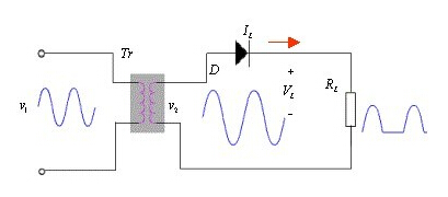 半波整流電路:半波整流就是利用二極管的單向導電性能,使經(jīng)變壓器出來(lái)的電壓Vo只有半個(gè)周期可以到達負載,如下: